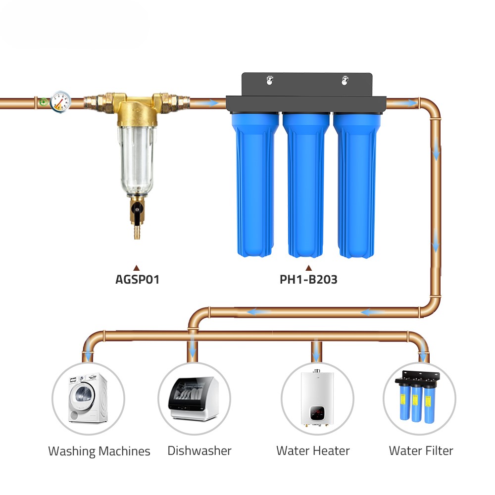 Acest filtru este utilizat pentru prefiltrarea apei . Se monteaza pe conducta de apa potabila la intrarea in casa sau inainte de filtru pentru apa potabila fara sa reduca presiunea apei.